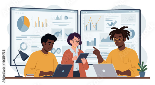 Multinational business community. Join our team vector landing page and website template. Group of diverse business people and company office staff.  Teamwork, man and woman employee.
