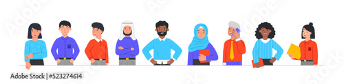 Multinational society of students set. Multicultural teenagers community holding education supplies isolated on white background. Young people vector illustration