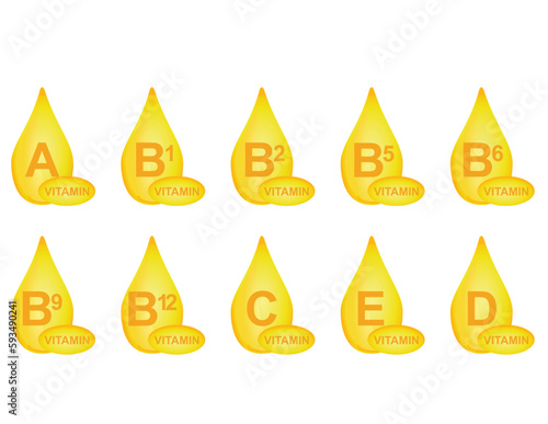 Omega 3 6 9, calcium and vitamin drops, vector illustration. Omega nutrition products. Multivitamin, mineral and omega supplements.