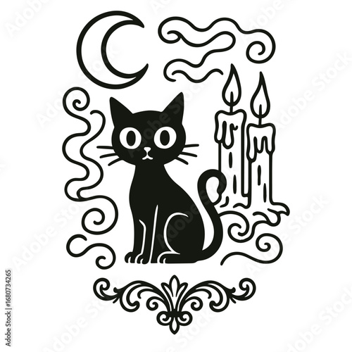 Music cat vector. Cute kitten animal character playing double bass icon. Funny comic cartoon kitty pet musical performance. Jazz musician isolated on white background