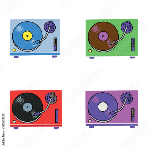 Music layout flyer invitation design vector set. Musical ornament illustration concept. Decorative background with loudspeaker, microphone and headphones , notes and vinyl player