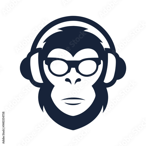 Monkey with headphones t-shirt vector grunge illustration. Chimpanzee listening to music.