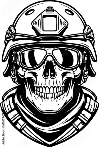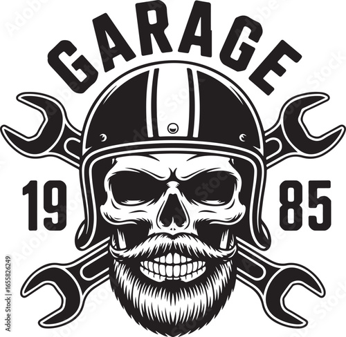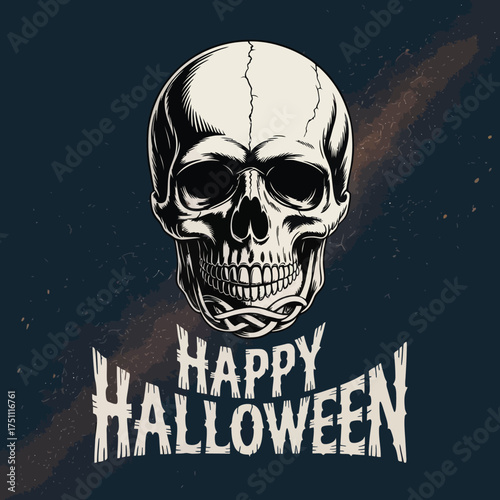 Music skull vector illustration. Vintage grunge design with human skull in cap and with headphones for t-shirt or print.