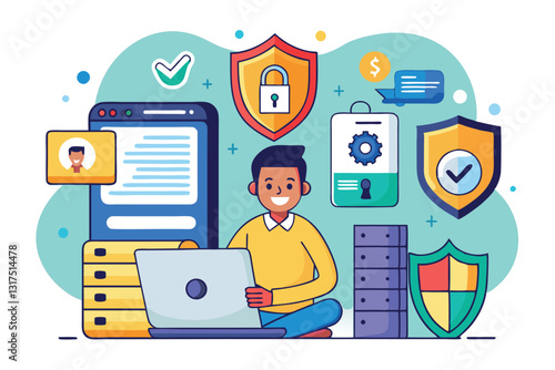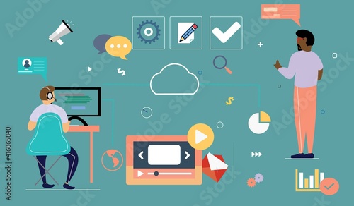 Muslim woman in hijab works with virtual reality screens. Female engineer and data analytic. Diversity and Break the science bias concept vector illustration. Women in tech. Innovative technologies.