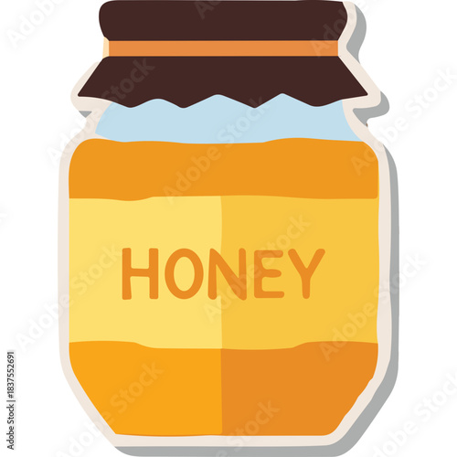 Natural floral honey jar, vector illustration in paper art style. Clover honey frame. Beekeeping, organic sweet product logo, label.