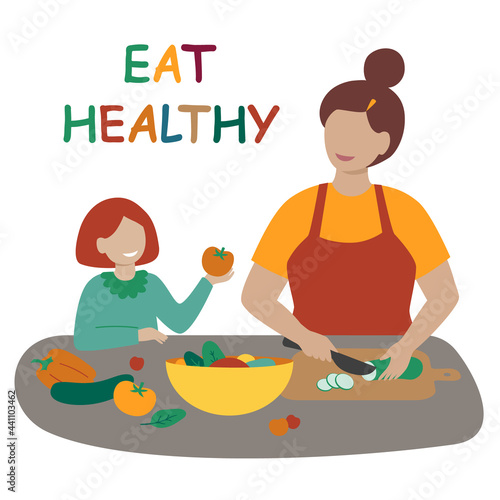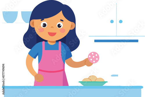 Naughty daughter interfering with mom cooking vector icon isolated on white background