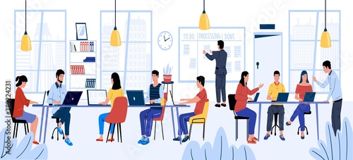 New flight travel rules at airport terminal check-in, vector flat illustration. Pilots stewardesses passengers wearing face masks, health thermal screening. Covid-19 spread prevention during travel.