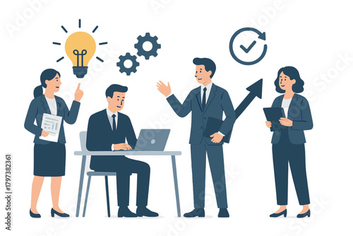 New ICO or initial coin offering concept vector illustration. Successful promotion of new cryptocurrency project.