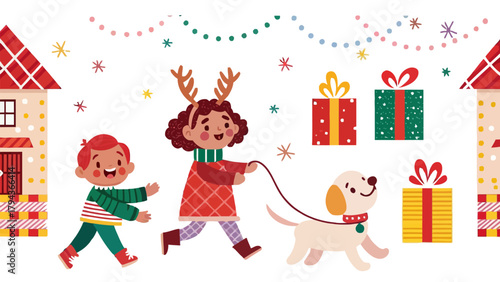 Micro male and female characters decorating huge gingerbread biscuit, vector illustration. Christmas and New Year party celebration concept for web banner, website page etc.