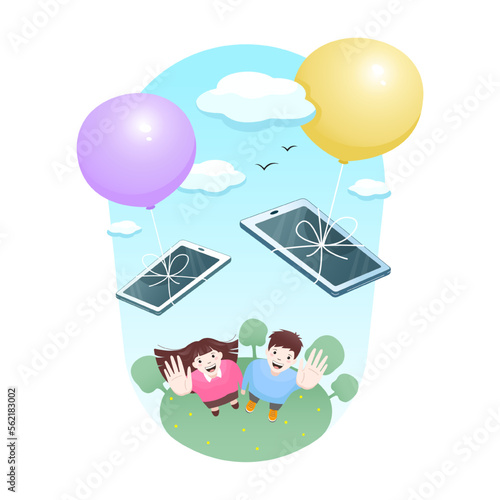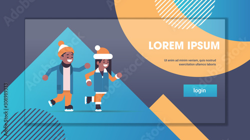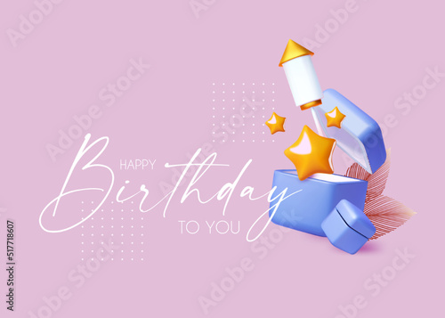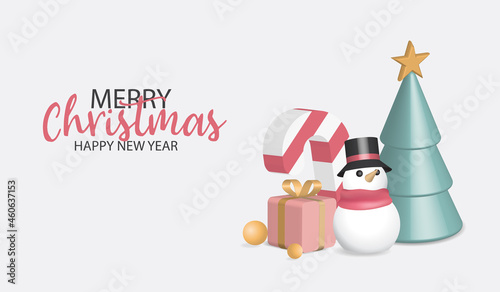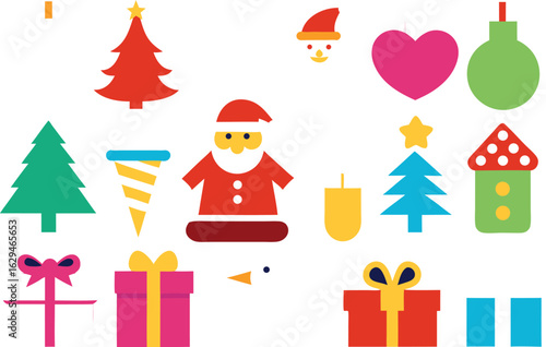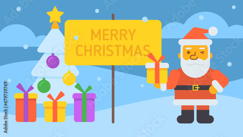Happy new year poster with isometric santa head, creative chrismas tree and festive wrapped gift box, candy cane treats illustration. Winter seasonal holidays celebration and greeting card design