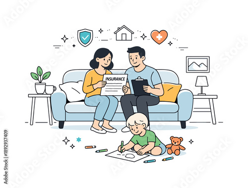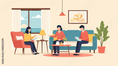 Newborn baby vector. Family holiday illustration. Young mother and father celebrating childbirth with friends scene. Happy parent care of infant kid. Parenthood, maternity and relationship