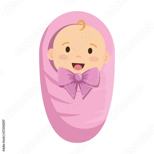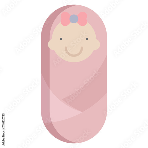 Newborn baby swaddle vector. Infant girl wrapped in pink blanket cartoon icon isolated on white background. Child born, birthday, baby shower concept