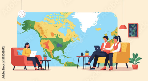 Live tv news programme, vector illustration. Male and female characters news reporter, journalist, commentator, shooting crew. Television production studio concept for web banner, website page etc.
