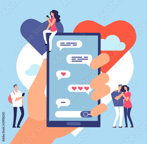 Vector illustration of big phone with bank card, nfc radio wave on screen, tiny people doing money transfer via near field communications enabled smartphone. NFC technology concept for web banner etc.
