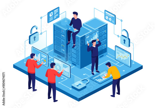NFT minting process, flat vector isometric illustration. Conveyor belt turning digital art into crypto collectibles on Ethereum blockchain. NFT minting platform.