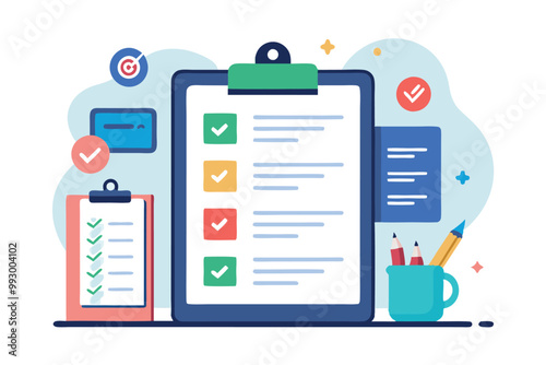 Notebook icon set, vector isolated illustration. Realistic checklist, diary, clipboard with check mark, notepad with pencil, memo, planner. Office stationery.