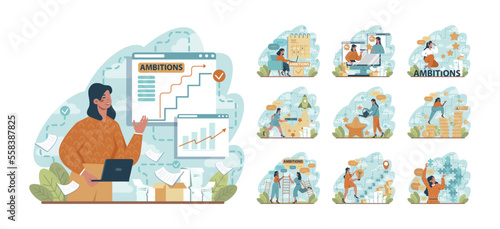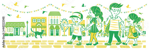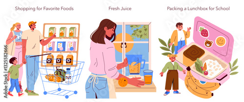 Nursery room interior hand drawn vector illustration set. Home modern interior design. Newborn child room furniture and accessories. Baby crib, colorful wallpaper, kids toys, playground.