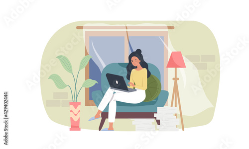 Obesity and weight problems. Sad overweight woman in underwear looking at herself in the mirror, flat vector illustration. Unhealthy eating and lifestyle. Dysmorphophobia.
