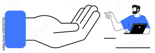 Obstetrics and gynecology background. Newborn baby in hand of doctor in uniform vector illustration. Child birth medical poster design