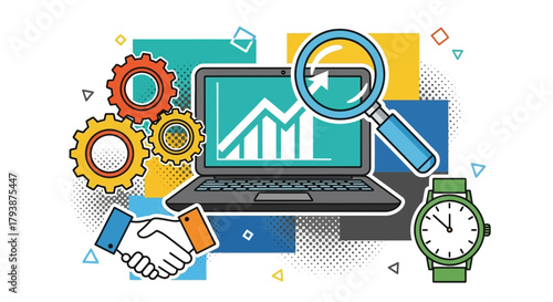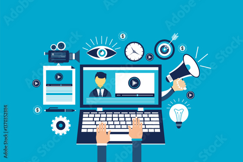Oculist vector flat illustration. Computer, eye drops, contact lenses container and solution, prescription, trial frame. Optometry, eye test and vision correction equipment for web banner webpage etc.