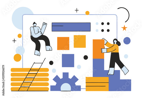 Huge office diary and micro business people making schedule and notes in order to fulfill tasks in time. Business and finanace, time management and planning concept for web banner, website page etc.