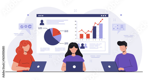 Office meeting landing page design, website banner template set, flat vector illustration. Business people engaged in discussion sitting at table. Brainstorm, office workshop, teamwork.