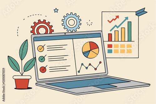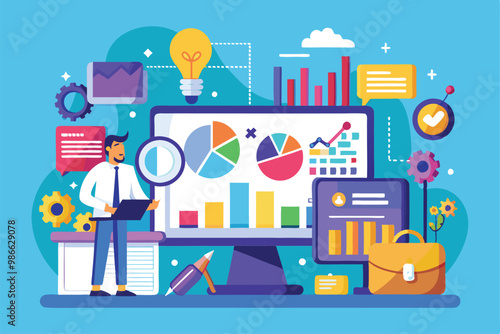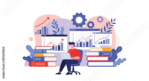 Office people organizing computer electronic files, creating folders, saving office documents, flat vector illustration. Digital file management.