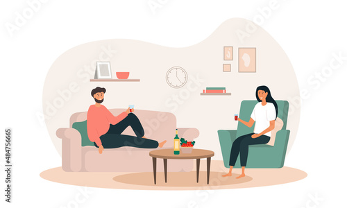Office scene with modern workplace, two women working on laptop computers, drinking coffee and chatting sitting at table opposite each other, flat vector illustration. Office situation, coffee break.