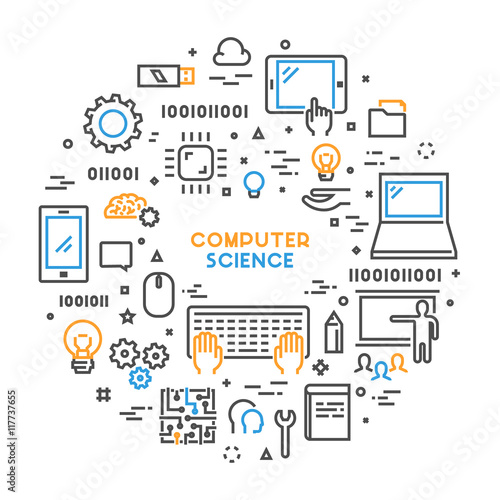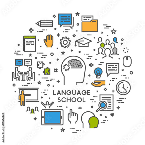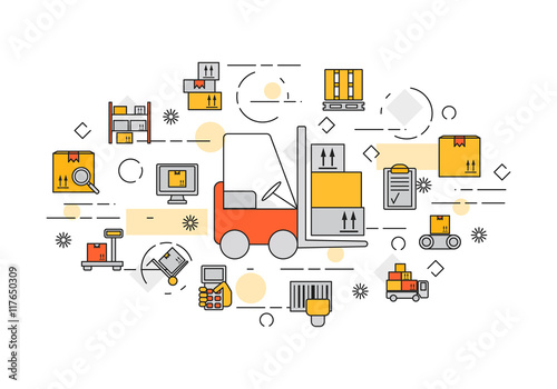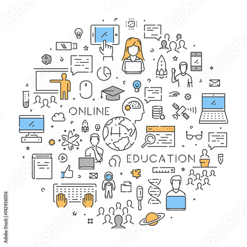 Office team circle vector illustration. Modern thin line flat style design element with business symbols for website banners and printed materials.