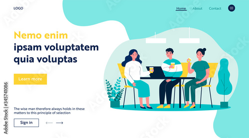 Office team vector website template, web page and landing page design for website and mobile site development. Teamwork, cooperation concept, paper art craft style.