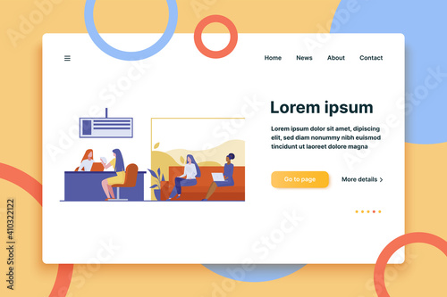 Office vector website template, web page and landing page design for website and mobile site development. Business workflow management, office situations, data analysis concepts.