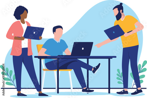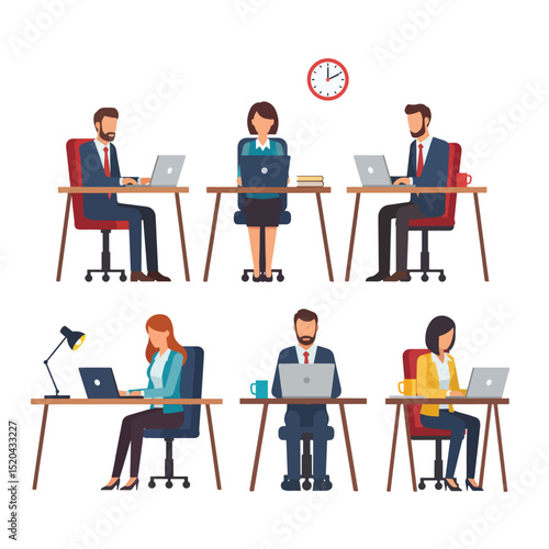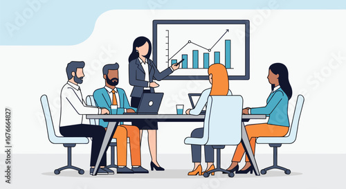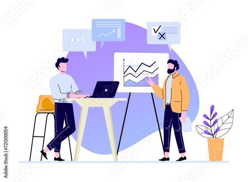 Business people at work, vector flat style design illustration. Woman showing document to man sitting at table. Office work concept for web banner, website page etc.