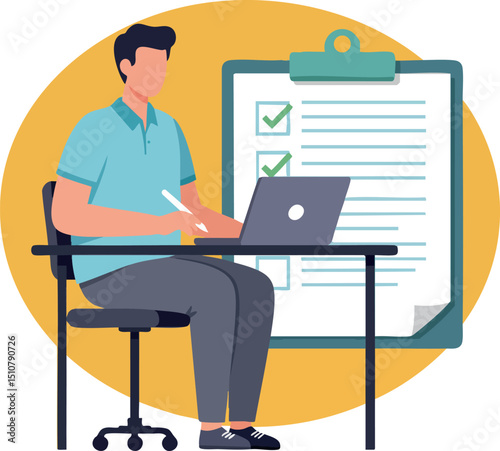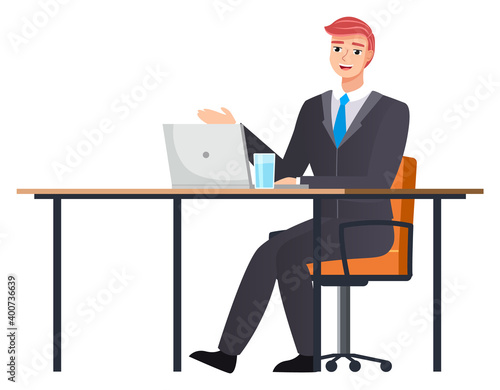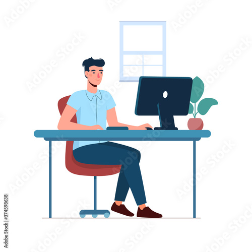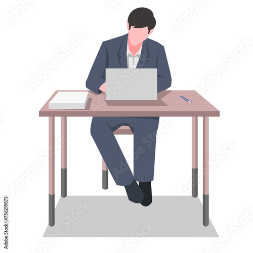 Office worker overloaded with job sitting at table vector icon isolated on white background