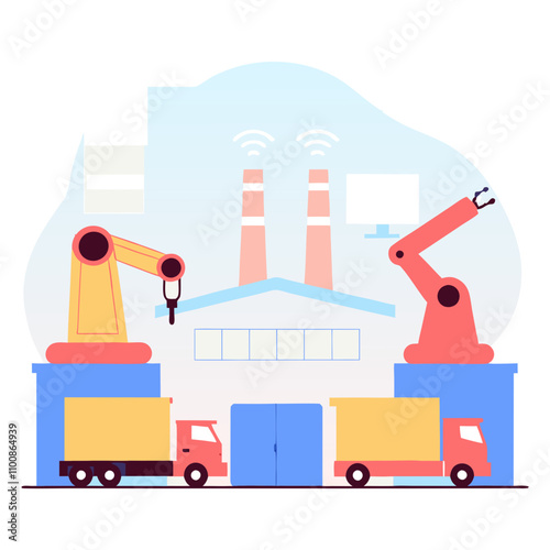 Oil production vector flat illustration. Hand with auto fueling nozzle, barrel, refinery, tanker, car. Refining, transporting and marketing of petroleum products. Oil industry concept for web banner.