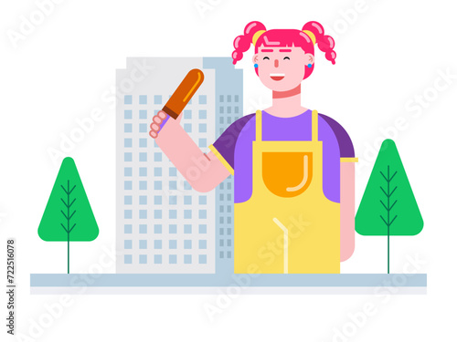 Old woman drinking water vector icon isolated background.