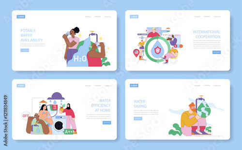 Online children education concept. Teacher on a screen and pupils in class. Home education. Vector web site design template. Landing page website illustration.