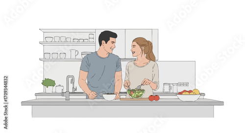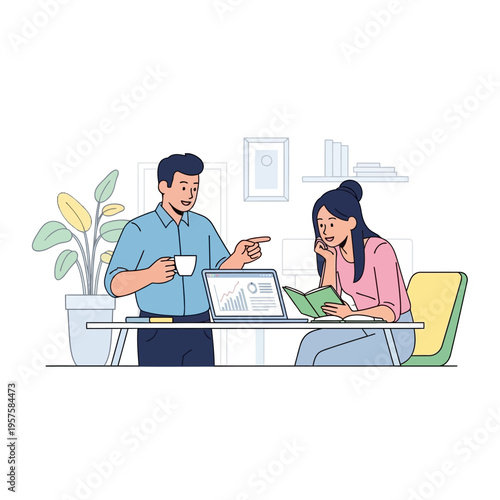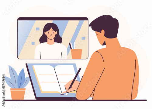 Online conversation between young couple over the internet, flat vector illustration. People with chat bubbles, envelope sending and receiving messages. Online communication.