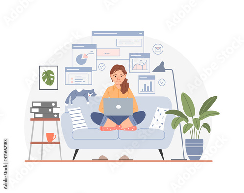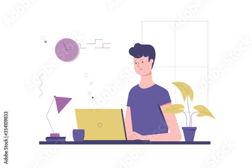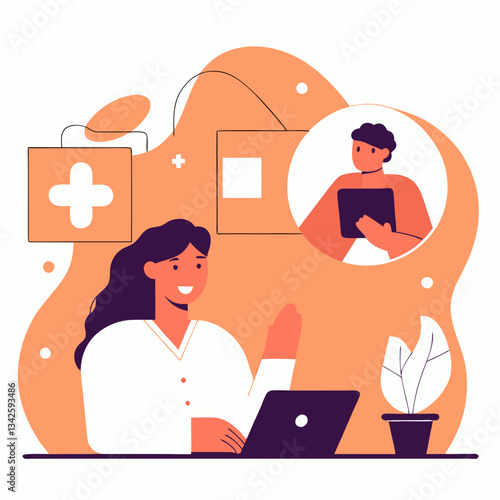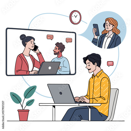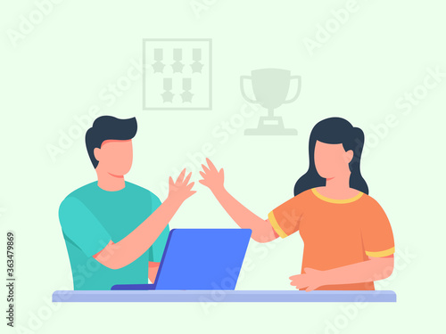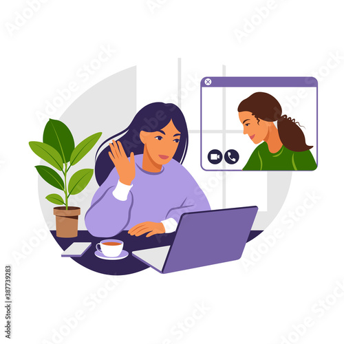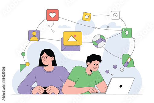 Online conversation between young couple over the internet, flat vector illustration. People with chat bubbles, envelope sending and receiving messages. Online communication.