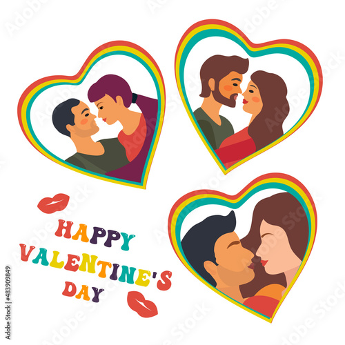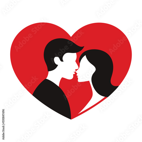 Two red hearts with boy and girl chatting, getting acquaintance using mobile phones, vector illustration in paper art style. Online dating app concept.