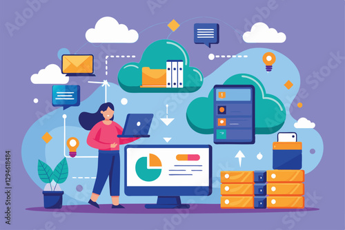 Tiny people, loader delivery man loading cardboard boxes into smartphone and woman receiver getting parcel from it, flat vector illustration. Online delivery service.