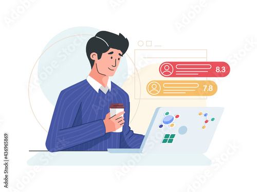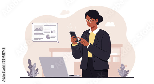 Online detective professional service vector illustration. Agent character investigating crime. Mobile call, clues and offender personal file, photo camera on book stack flat cartoon design