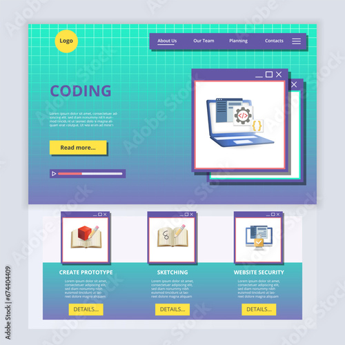 Online education landing page website template. Vector isometric illustration. Online training courses, e-learning, distance education concept.