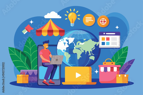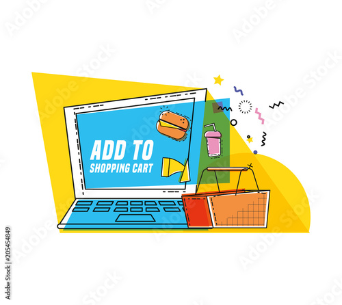 Online exchange vector flat illustration. Laptop with candlestick charts on screen, money, credit cards, desk lamp, wrench, cogwheels. Stock market investment trading set for web banner website page.
