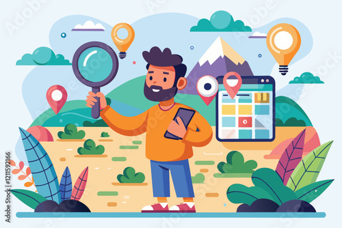 Online fake news concept flat vector illustration. Tiny people and huge laptop computer with cracked planet Earth globe, journalist with mic on screen. Online news media, disinformation, propaganda.