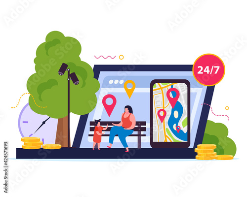 Fresh and healthy fruit and veg online market, vector illustration. Huge smartphone with grocery shopping app and micro characters. Online farmers market and local food delivery concept for banner etc