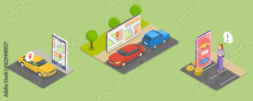 Online flower shop in isometric style design. Buy flowers on internet using mobile smartphone with fast delivery and credit card payments. Isometric 3d isolated icons.
