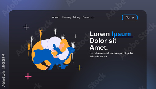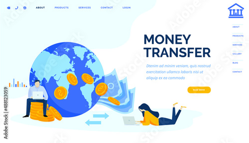 Online game vector website template, web page and landing page design for website and mobile site development. Two professional gamers playing video game using laptops. Esports championship concept.