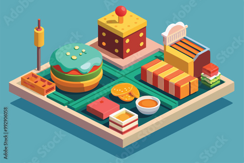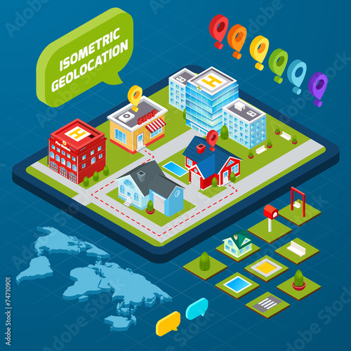 Online hotel booking concept vector flat isometric illustration. Hotel building and doorman with luggage on smartphone screen.