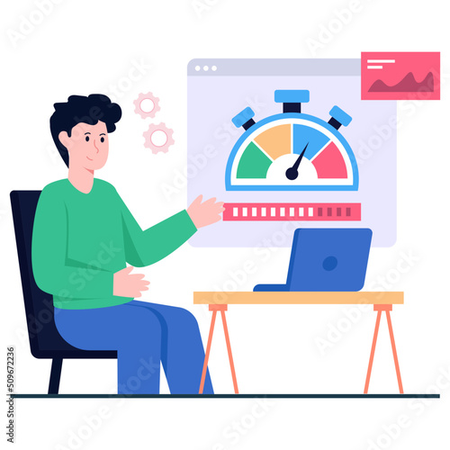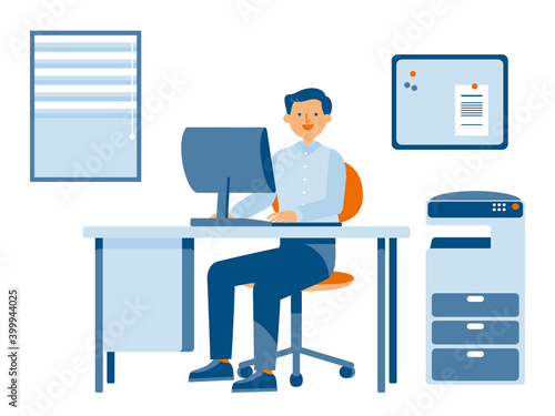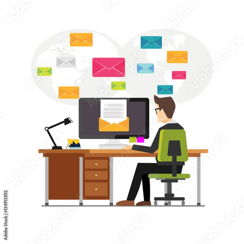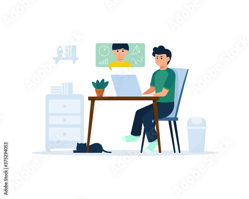 Online hotel booking vector illustration. Man making reservation of hotel room. Hotel people flat style design element, icon isolated on white background.