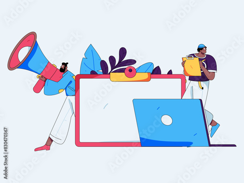 Magazine, vector flat style design illustration. Photoshoot, professional photographer taking photo of young girl model. Digital publishing magazine app concept for web banner, website page.